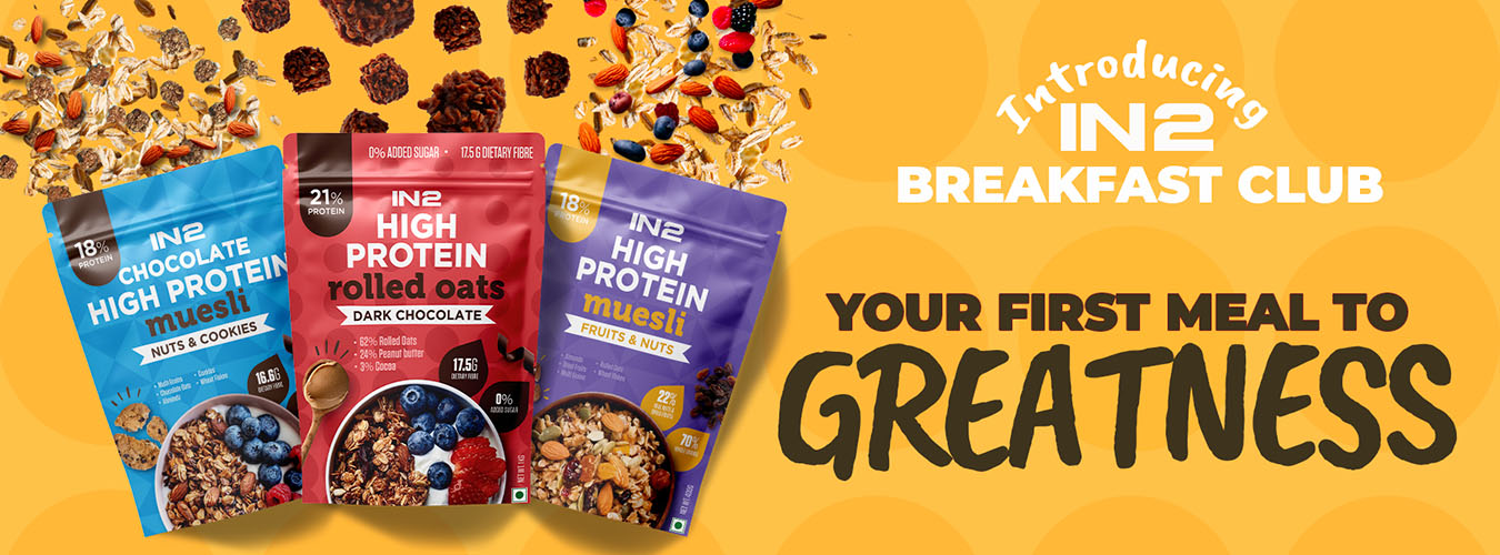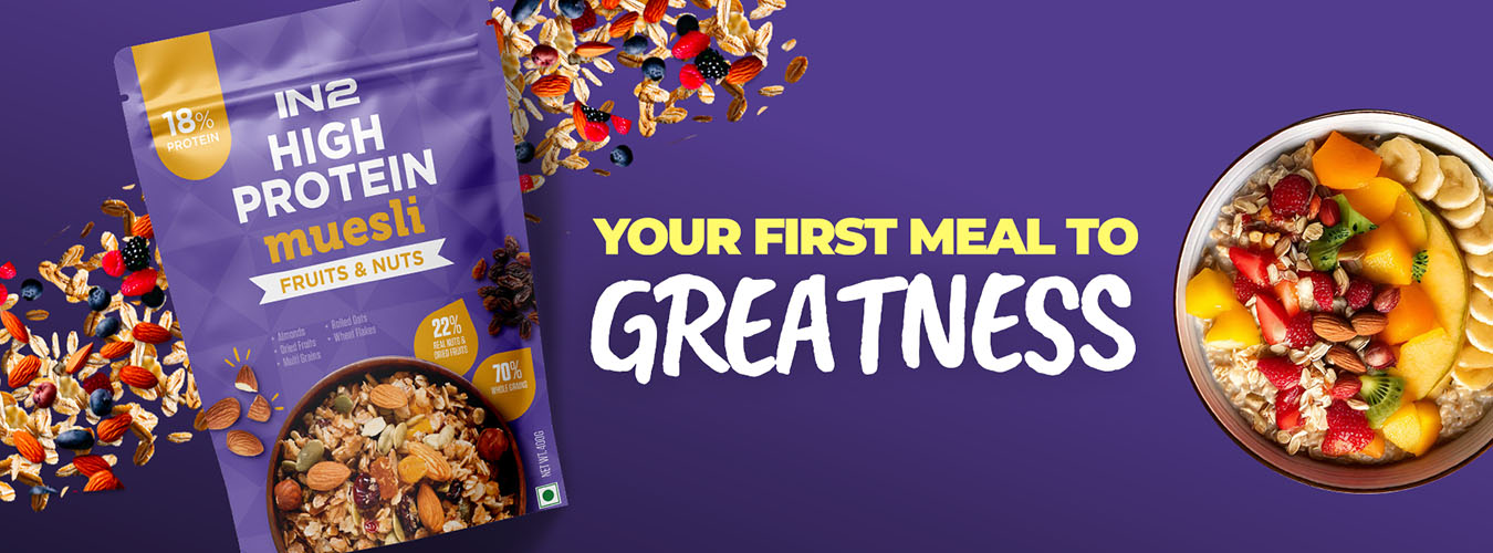 Rediscover breakfast with IN2 Fruit & Nuts Muesli—where nutrition meets indulgence. Start your mornings with a flavorful medley of wholesome grains, naturally sweet dried fruits, and crunchy nuts. Packed with 18g of protein and 16.6g of fiber per serving, this muesli is more than just a meal—it's your go-to energy boost for the day. With 75% whole grains and zero trans fats, IN2 Fruit & Nuts Muesli is your ticket to a healthier, happier morning. Say goodbye to boring breakfasts and hello to a bowl full of vitality and flavor.
